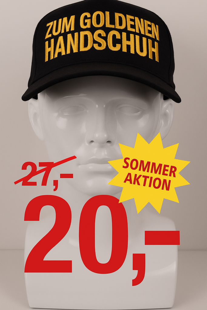 Hol dir dieses brandneue Cap im Truckerstyle mit Netz und großem Schriftzug "Zum Goldenen Handschuh" in weiß oder gold!